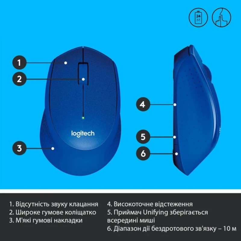 Бренд: Logitech; Беспроводное подключение: есть; Интерфейс коммуникации с ПК: радиоинтерфейс; Тип сенсора: оптический; Разрешение, DPI: 1000; Конструкция корпуса: эргономичная; Общее количество кнопок: 3; Тихий клик: есть