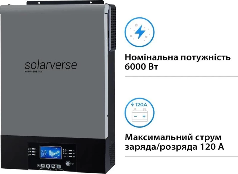 Mobile Planet, Інтернет-магазин мобільної техніки (Mobileplanet)\\Автономный солнечный инвертор Solarverse Ampere UPS 6kW 48V 1 MPPT Wi-Fi 220V Однофазний (SV6048UPSW)