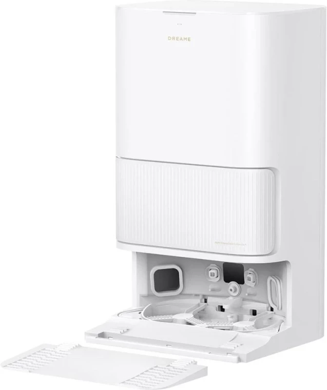Бренд: Dreame; Тип покрытий: плитка, паркет, ламинат, кафель, линолеум, ковер, ковролин; Сила всасывания, Па: 13000; Емкость пылесборника, мл: 320 (робот), 3200 (база); Емкость для воды, мл: 80 (робот), 4500 (база); Тип аккумулятора: Li-Ion 5200 mAh; Время работы от аккумулятора, мин: 260; Высота преодолеваемого порога, мм: 20; Высота прибора, мм: 104; Размеры, мм: 350 х 350 х 104