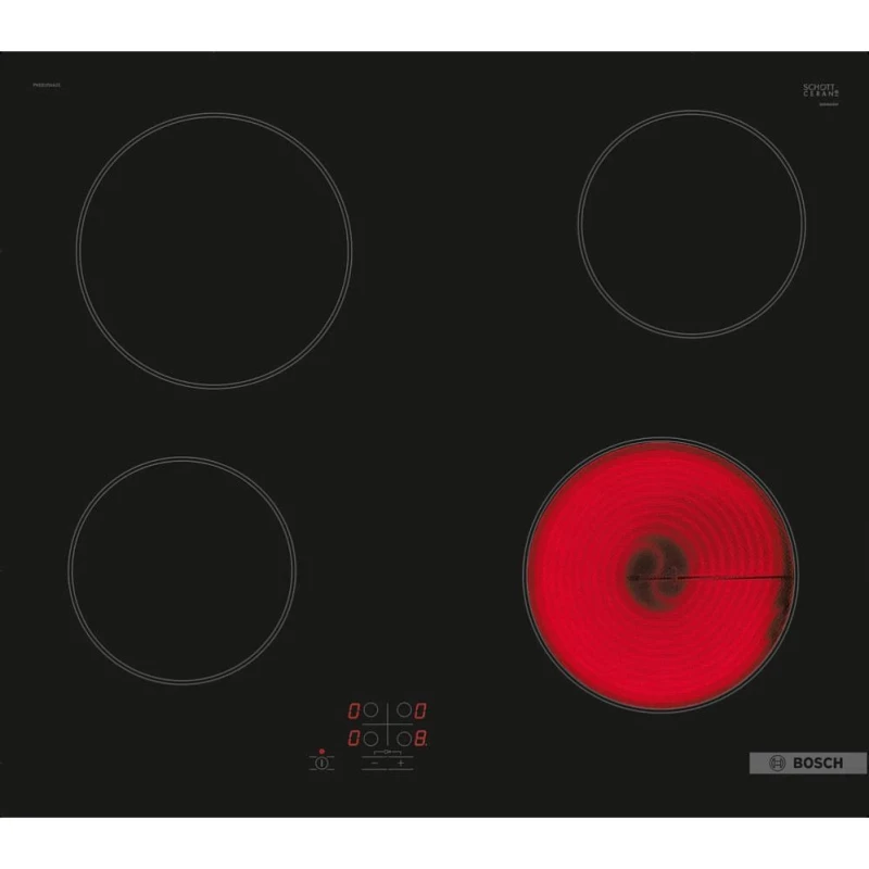 Бренд: Bosch; Ширина, см: 59.5; Глубина, см: 52.2; Высота, см: 4.5; Управление: сенсорное; Цвет: черный; Конструкция: независимая; Количество электрических конфорок: 4; Размер конфорок, мм: 2х145; 2х180; Мощность конфорок, кВт: 2х1,2; 2х2