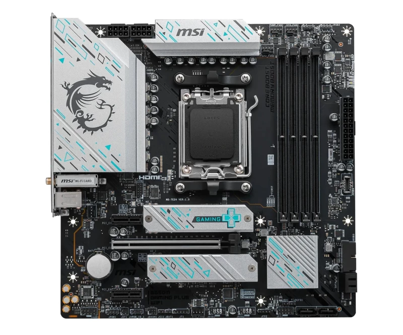 Конструкция силовой части: 10+2+1; Тип охлаждения чипсета материнской платы: Пассивный; Поддерживаемые семейства процессоров: AMD Ryzen™; Socket процессора: Socket АМ5; Чипсет: AMD Б650; Архитектура процессора: Zen 5 (6-е Gen.); Zen 4 (5-е Gen.)