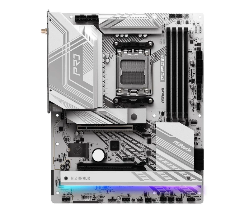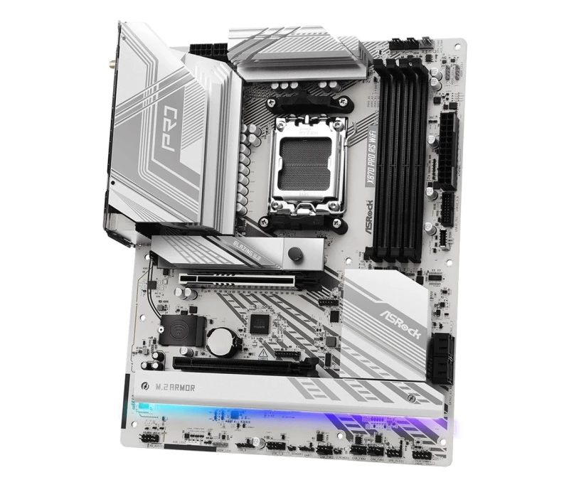 Конструкция блока питания: 14+2+1; Охлаждение блока питания: Да (Полностью охлаждаемый блок питания с алюминиевым радиатором); Совместимость с SSD-накопителями m.2 с радиатором: нет; Тип охлаждения чипсета материнской платы: Пассивное; Поддерживаемые семейства процессоров: AMD RyZen™; Разъём процессора: Socket AM5; Чипсет: X870; Архитектура процессора: Zen 4 (5-го Gen.); Поддерживаемый тип памяти: DDR5-8000...
