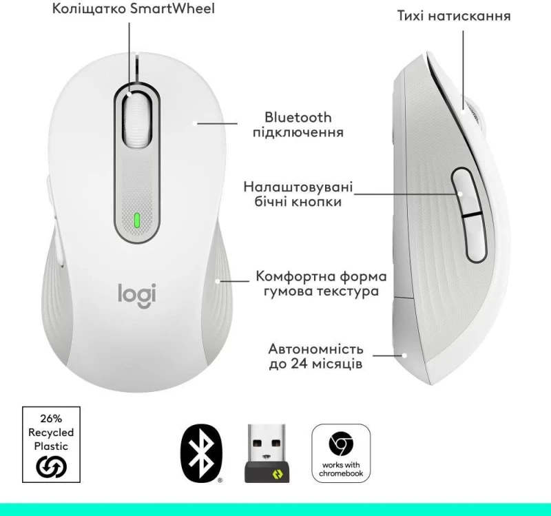 Mobile Planet, Интернет-магазин мобильной техники (Mobileplanet)\\Logitech Signature M650 Wireless Mouse Off-White (910-006255)