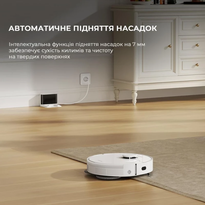 Бренд: Dreame; Площадь уборки, м.кв.: 145; Тип покрытий: ворсистый ковер, ковролин, ламинат, линолеум, паркет, плитка; Сила всасывания, Па: 7000; Емкость пылесборника, мл: 470; Емкость для воды, мл: 300; Тип аккумулятора: Li-ion 5200 mAh; Время работы от аккумулятора, мин: 155; Высота преодолеваемого порога, мм: 20; Высота прибора, мм: 97