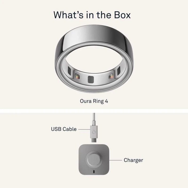 Бренд: Oura; Линейка: Ring 4; Размер кольца: 9; Ширина, мм: 7.9; Толщина, мм: 2.88; Масса, г: 6.45; Цвет: белый; Материал корпуса: титан / керамика; Водозащита, глубина/ATM: 10; Рабочая температура, °C: от -10 до 52
