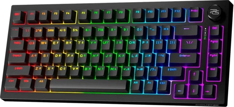 Бренд: Proove; Проводное подключение: есть; Беспроводное подключение: есть; Интерфейс коммуникации с ПК: радиоинтерфейс, Bluetooth, USB-C; Формфактор клавиатуры: компактная; Тип клавиш: механический; Модель свитчей: Huano Kobe; Подсветка: + (RGB); Источник питания (для беспроводных): аккумулятор; Тип разкладки: ANSI