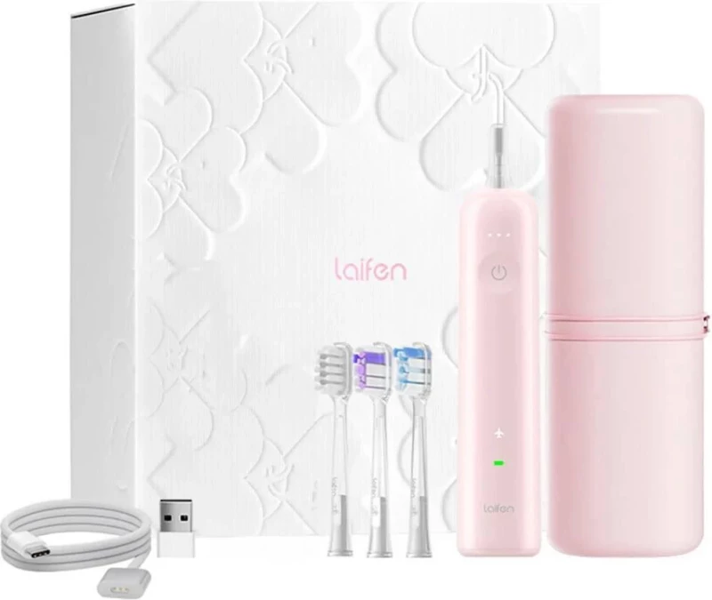 Бренд: Laifen; Возрастная категория: для взрослых; Количество насадок в комплекте: 3; Виды насадок: насадка-щетка; Форма щетки: классическая (Sonic); Жесткость щетины: средняя; Количество скоростей (режимов) работы: 3; Питание: аккумулятор; Время автономной работы, мин: 120 (до 30 дней); Цвет: розовый