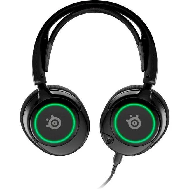 Бренд: SteelSeries; Способ подключения: Проводной; Тип конструкции: Полноразмерные; Тип акустического оформления: Закрытые; Тип крепления: Оголовье; Материалы (оголовья/чаш/амбушюр): пластик+ткань/пластик/ткань; Вес, г: 253; Цвет: Черный; Подсветка: есть; Конструкция излучателя: Динамические